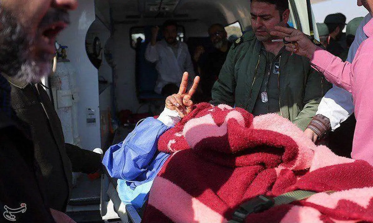 به گزارش گروه حوادث رکنا، یکی از مجروحین حادثه تروریستی زاهدان هنگام انتقال به اصفهان، دستش را به نشانه پیروزی بالا آورده است.