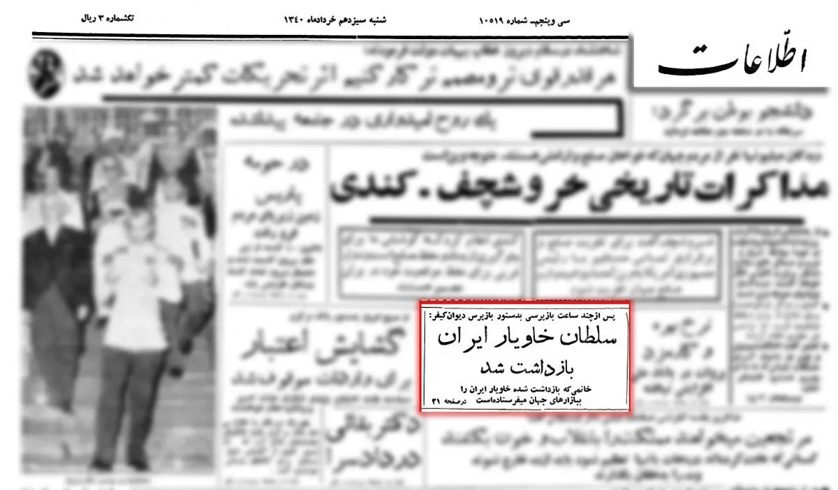 رکنا: در خرداد سال ۱۳۴۰ خبری در روزنامه اطلاعات منتشر شده که از بازداشت سلطان خاویار ایران حکایت میکند.