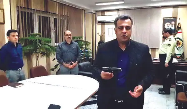 او در برابر دوربین نشان میدهد و میگوید که در این کلت کمری ١٣ فشنگ باید وجود داشته باشد اما با شلیک ٥ گلوله تنها ٨ تیر در اسلحه به جا مانده است. با انتشار این فیلمها هجمههایی به این ویدیوها شده است که گفته میشود چرا آلت قتاله باید در دست خبرنگار صداوسیما باشد یا با آن اسلحه چرا جلوی دوربین آمده است؟