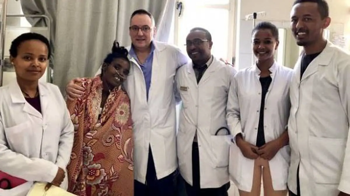 بعد از این مدت زن جوان به بیمارستان محلی در اتیوپی منتقل شد که بعد از گرفتن عکس رادیولوژی گفته شد که چاقو در نزدیکی شش های وی فرو رفته است و اما به شش وی آسیب نرسانده است و خارج کردن آن کار بسیار سختی است ، با این حال به کمک پزشکان 11 اینچ چاقو از بدنش خارج شد.