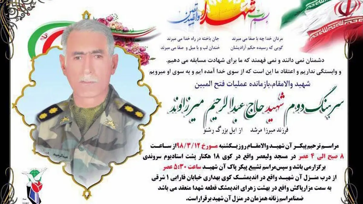 سرهنگ حاج عبدالرحیم میرزاوند به شهادت رسید+ عکس