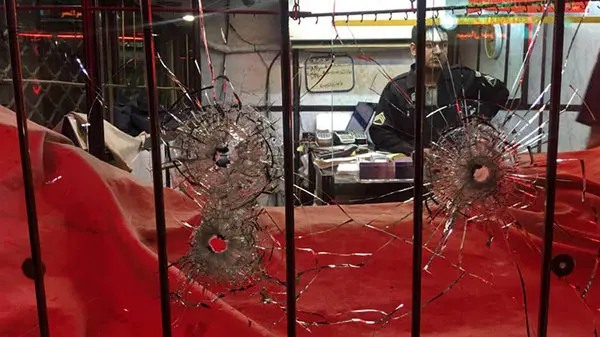 این مقام انتظامی تصریح کرد: سارق دیگر که بینی اش را با چسب چسبانده بود و ساک دستی دستش داشت پس از شلیک گلوله ها توسط همدستش به نرده های نصب شده روی شیشه چند مشت زد که نتیجه ای نداد.