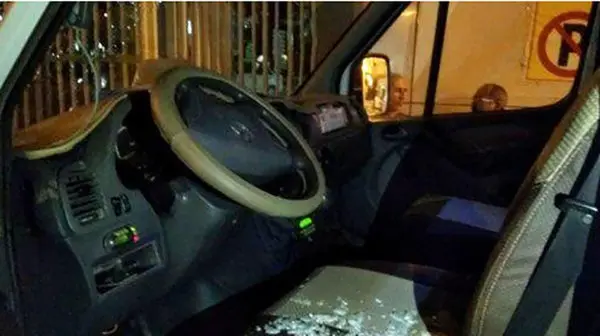 وی ادامه داد: در ابتدا به وسیله یک لوله، شیشه جلوی خودرو خُرد شد و سپس با پرتاب یک تکه سنگ بزرگ به سمت راننده، شیشه درب سمت راننده شکست که خوشبختانه سنگ به سر مامور اورژانس اصابت نکرد.