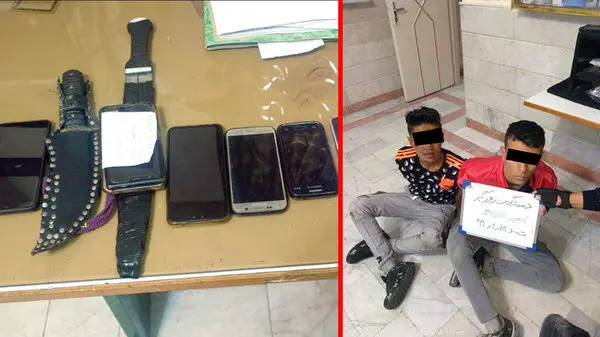 رکنا: عاملان زورگیری های مشهد که با گذاشتن قمه نیم متری زیر گلوی طعمه ها،گوشی تلفن و دیگر اموال آنان را می ربودند با تلاش گسترده نیروهای کلانتری شهرک ناجای مشهد دستگیر و به پنجه عدالت سپرده شدند.