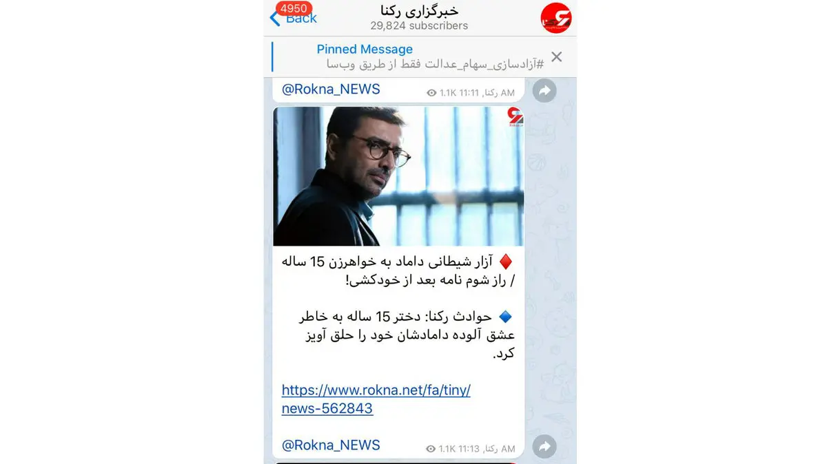 به گزارش رکنا، صبح امروز پایگاه خبری و اطلاع رسانی رکنا خبری با تیتر« آزار شیطانی داماد به خواهرزن 15 ساله / راز شوم نامه بعد از خودکشی! » منتشر کرد که با اشتباه ادمین کانال تلگرامی رکنا عکس امین زندگانی روی این خبر گذاشته شد که باعث ناراحتی این بازیگر محجوب و محبوب شد که پایگاه خبری واطلاع رسانی رکنا بخاطر این اشتباه صورت گرفته با پوزش از این بازیگر سرشناس ، ارتباط تصویر با خبر را تکذیب می کند. برای ورود به کانال تلگرام ما کلیک کنید.