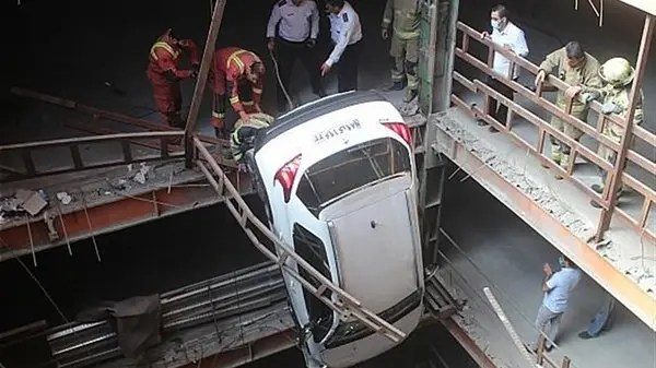حوادث رکنا: خودروی سواری پژو ۲۰۰۸ در ورودی اصلی ساختمان نیمهکاره ۱۷ طبقه با کاربری پارکینگ طبقاتی در حالیکه متوقف بود به دلیل نامعلوم به حرکت در آمده و در یک طبقه پایینتر به صورت معلق و ناایمن متوقف شد.