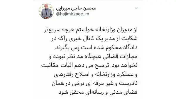 رای صادره حضوری و ظرف بیست روز پس از ابلاغ قابل تجدید نظرخواهی در محاکم تجدید نظر استان تهران می باشد.برای ورود به کانال تلگرام ما کلیک کنید.