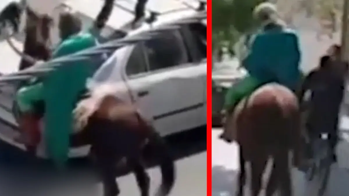 فیلم اسب سواری امام زمان قلابی در خیابان های اصفهان / او با شمشیر دولبه به مردم حمله کرد
