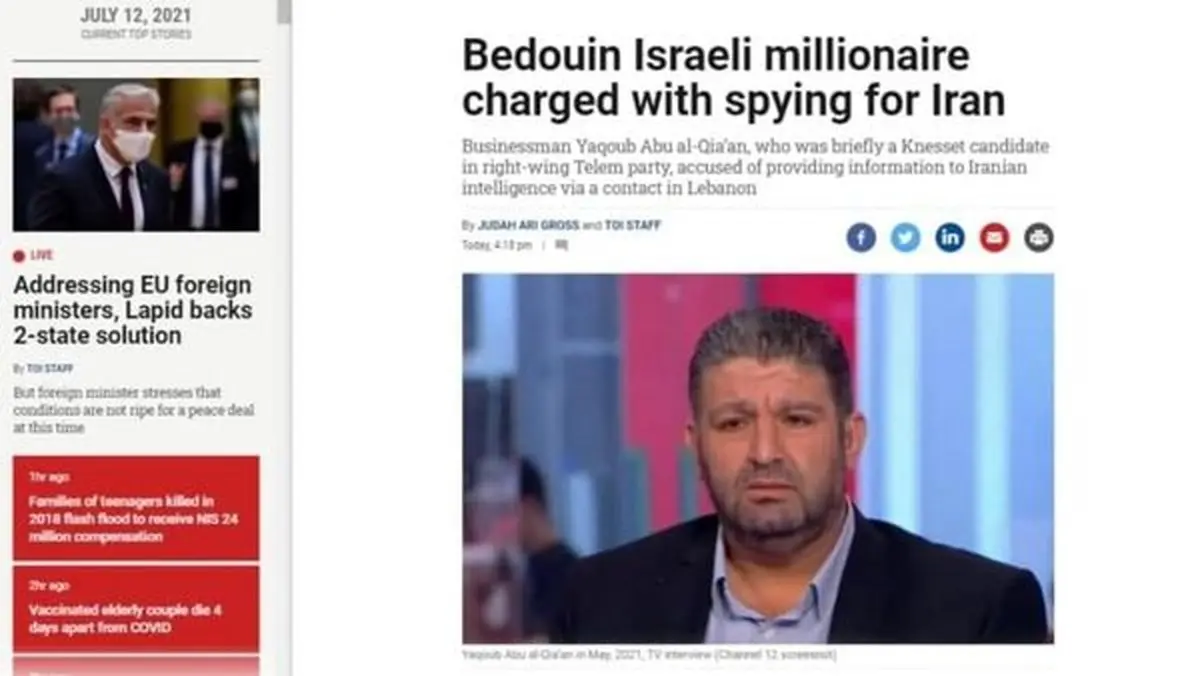 به گزارش رکنا،رسانه صهیونیستی تایمز آو اسراییل خبر داد که که یک میلیونر اسراییلی، متهم به جاسوسی برای ایران شده است.