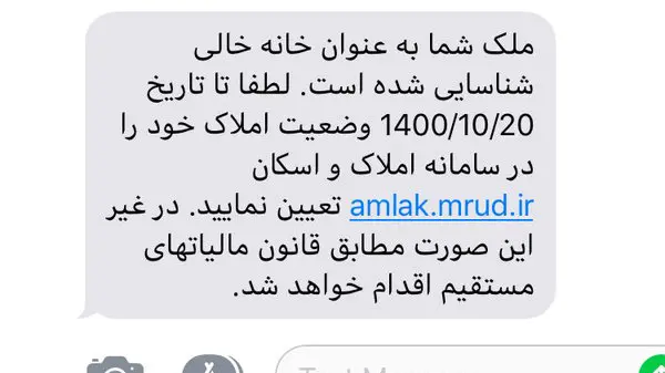 حوادث رکنا: مجرمان سایبری با ارسال پیامک های تهدید آمیز به هموطنان با نام و عنوان سامانه ملی املاک و اسکان کشور مترصد کلاه برداری از آنان می باشند.