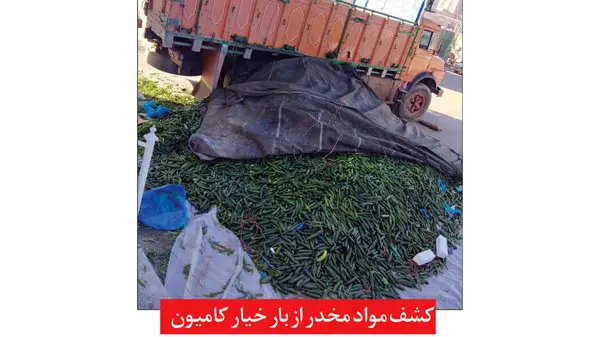 حوادث رکنا: نیروهای گشت نامحسوس کلانتری سپاد مشهد، مقادیری تریاک را از میان بار خیار یک دستگاه کامیون کشف و ضبط کردند.