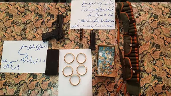 فرمانده انتظامی شهرستان پاسارگاد گفت: دربازرسی ازمخفیگاه این سارق، تعداد ۵ عدد النگوی طلا، 150 قطعه سیم کارت، یک قبضه اسلحه کلت کمری و مقادیری فشنگ مربوطه کشف شد.