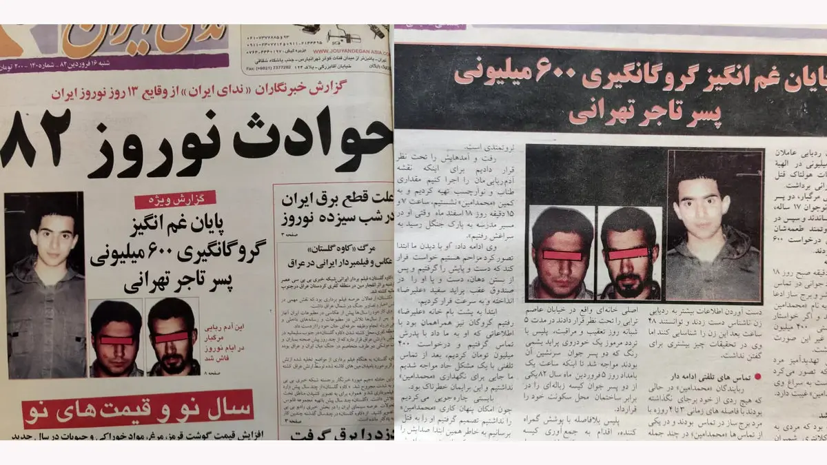 سردبیر رکنا در این روایت گفت:«یکی از تلخ ترین پرونده های آدم ربایی در نوروز سال 82 کشف شد.ماجرا از این قرار بود که در 18 اسفند سال 81، پسر نوجوان 16 ساله ای توسط دو آدم ربا در منطقه الهیه تهران ربوده شد.آدم رباها با ارسال صدای ضبط شده محمدامین برای خانواده اش که تقاضای کمک می کرد، از آنها مبلغ بالایی یورو معادل 600 میلیون تومان خواسته بودند.»