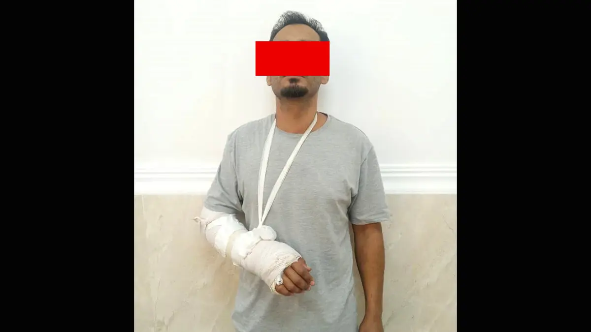 بازداشت سارق پالایشگاه آبادان با دست شکسته / در صحنه فراری از بالای دیوار پایین افتاد + عکس