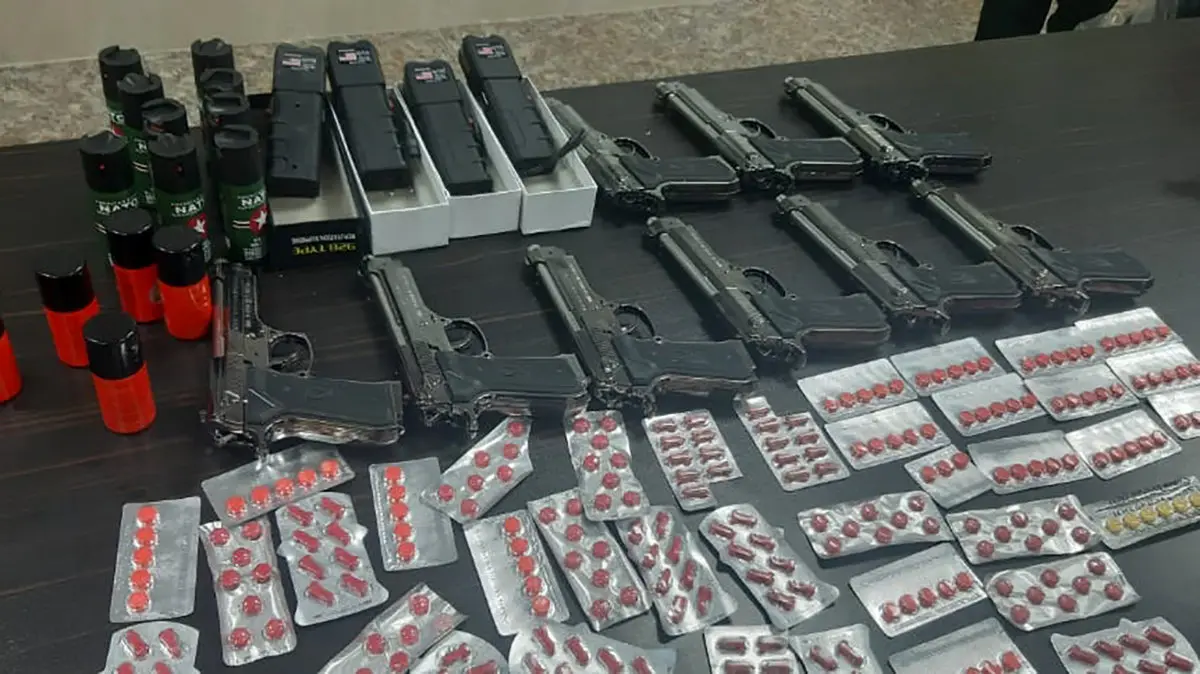 در این راستا ماموران کلانتری ۱۱ولیعصر آبادان با کار اطلاعاتی این فرد را شناسایی طی هماهنگی قضایی در مخفیگاهش دستگیرکردند در بازرسی از محل اختفای متهم ۹قبضه کلت فندکی و ۹قوطی اسپری و ۴عدد شوکر برقی و مقدار قابل توجهی قرص های ممنوعه کشف وضبط شد.