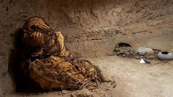 حوادث رکنا: باستانشناسان یک مومیایی مرموز که به وسیله یک طناب کاملاً بسته شده و دستهایش، صورتش را نیز پوشانده است، در مقبرهای زیرزمینی در کشور پرو کشف کردند! کارشناسان قدمت این اثر مکشوفه را چیزی در حدود ۸۰۰ تا ۱۲۰۰ سال تخمین زدهاند.