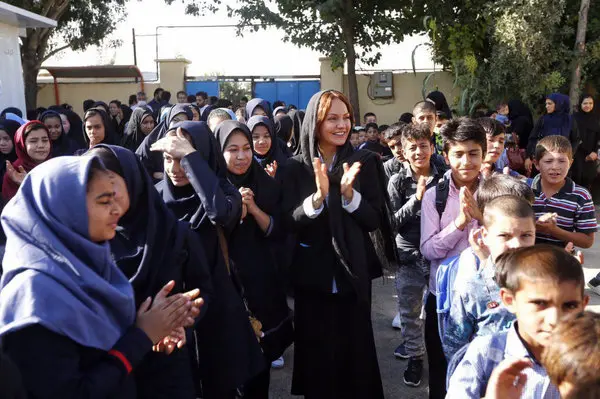 رکنا: مهناز افشار پس از به صدا درآوردن زنگ مدرسه کودکان کار ایلیا؛ خطاب به دانشآموزان این مدرسه گفت: برای خودتان رویا بسازید.