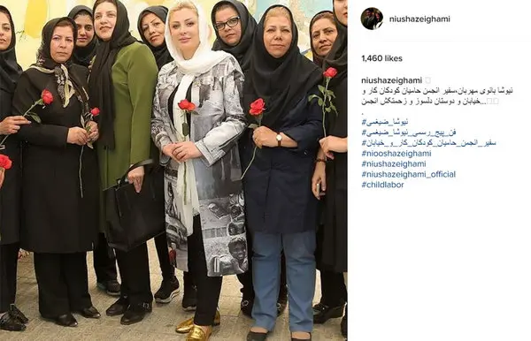 رکنا: در تصویر زیر نیوشا ضیغمی بازیگر سینما و سفیر انجمن کودکان کار و خیابان را مشاهده میکنید.