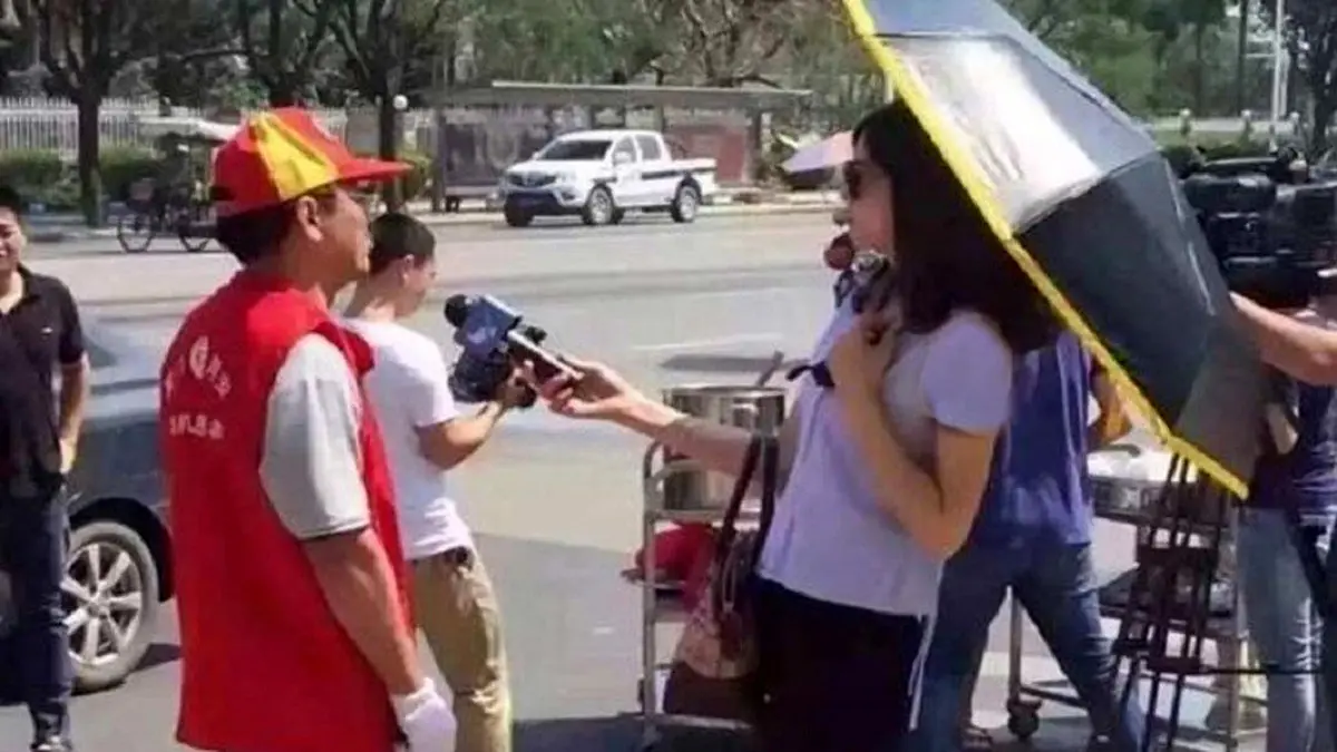 رکنا: یک گزارشگر تلویزیونی به دلیل استفاده از چتر و عینک آفتابی هنگام تهیه گزارش از کار تعلیق شد.