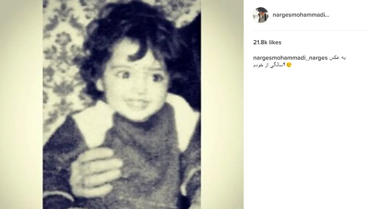 رکنا: نرگس محمدی عکسی از دو سالگی اش را در صفحه شخصی اش در اینستاگرام منتشر کرد.