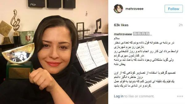 مهراوه شریفی نیا با انتشار عکسی در صفحه شخصی خود در اینستاگرام نوشت: