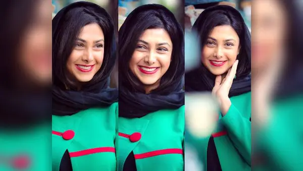 چهره خندان آزاده صمدی با استایل جدید و مانتوی سبز ! +عکس