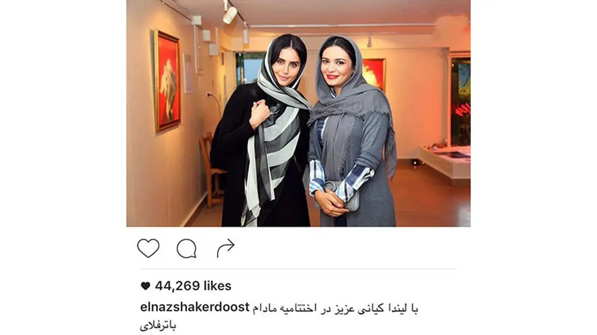 رکنا: الناز شاکردوست که در اختتامیه یک گالری شرکت کرده بود عکسی را در کنار لیندا کیانی منتشر کرد.