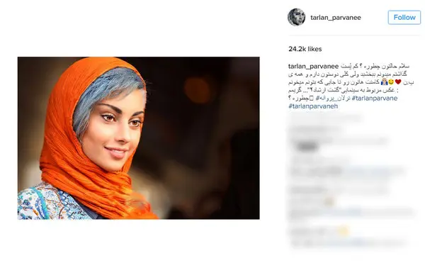 ترلان پروانه با انتشار این عکس در صفحه شخصی خود در اینستاگرام نوشت: