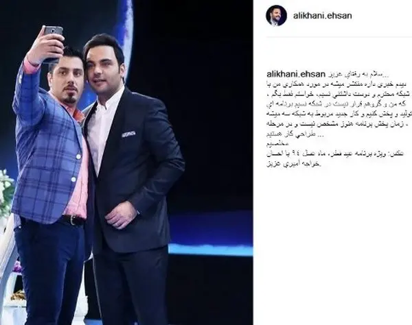 حضور احسان علیخانی در شبکه نسیم تکذیب شد +عکس