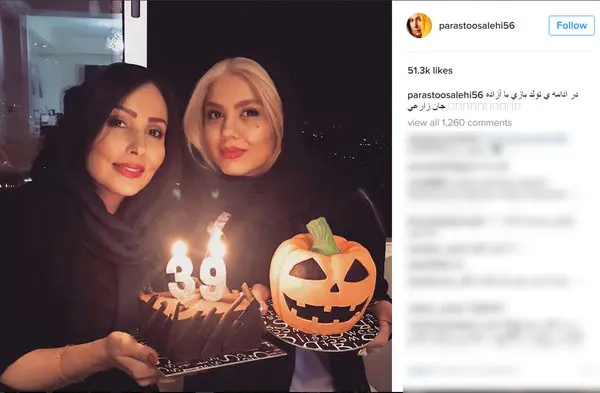 پرستو صالحی بازیگر سرشناس سینما و تلوزیون ایران در شب جشن تولد 39 سالگی خود عکسی در اینستاگرام منتشرکرد و در توضیح آن نوشت: در ادامه ی تولد بازی با آزاده جان زارعی
