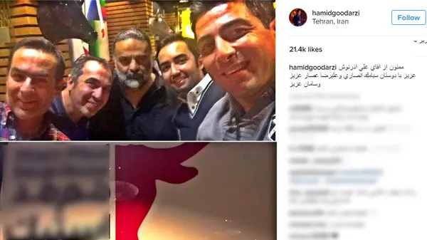 رکنا: حمید گودزری با انتشار عکسی از خودش به همراه دیگر چهره های معروف رونمایی کرد و نوشت: ممنون از آقای علی آذرنوش عزیز با دوستان سیامک انصاری وعلیرضا عصار عزیز وسامان عزیز.