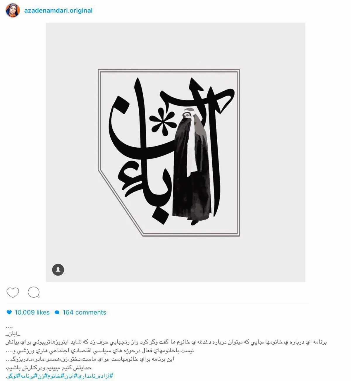 رکنا: آزاده نامداری با برنامه"آبان"به تلویزیون باز می گردد.