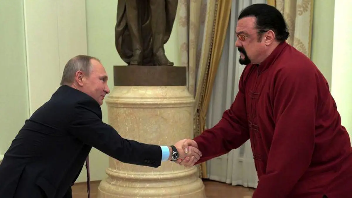 ولادیمیر پوتین طی مراسمی به «استیون سیگال» هنرپیشه هالیوودی گذرنامه روسی داد. استیون فردریک سیگال متولد ۱۰ آوریل ۱۹۵۲ در لنسینگ، میشیگان تهیهکننده فیلم، گیتاریست و بازیگر Actor حرفهای آمریکایی و دارای دان هفت ورزش رزمی آیکیدو است.برای ورود به کانال تلگرام ما کلیک کنید.