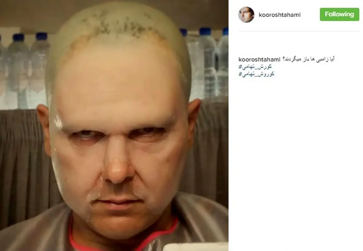 رکنا: کوروش تهامی صفحه اینستاگرامش را با تصویری از گریم جدیدش به روز رسانی کرد.