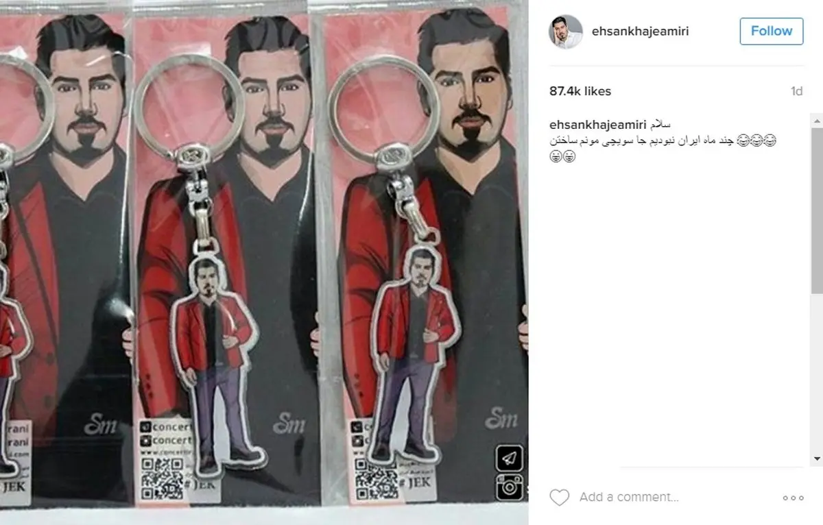 احسان خواجه امیری خواننده پاپ ایران عکسی از جاکلیدی با تصویر خودش منتشر کرد.