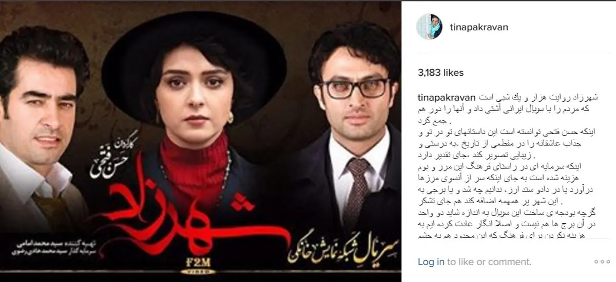 رکنا: تینا پاکروان کارگردان و بازیگر نامآشنای سینما در حمایت از سریال «شهرزاد» یادداشتی در اینستاگرام منتشر کرد.