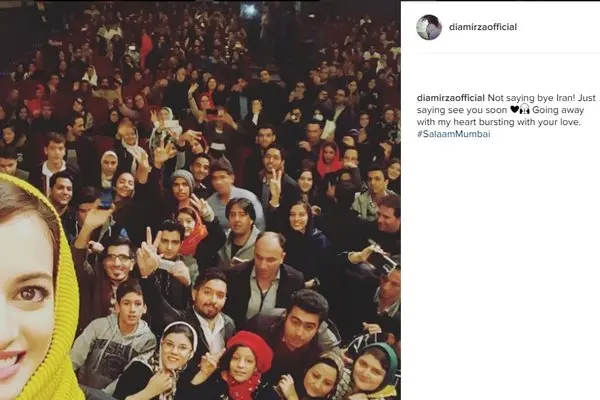 دیا میرزا هنرپیشه هندی فیلم سینمایی «سلام بمبئی» در اکران عمومی این فیلم با تماشاگران یک عکس سلفی گرفت و این عکس را در صفحه اینستاگرام خود به اشتراک گذاشت.