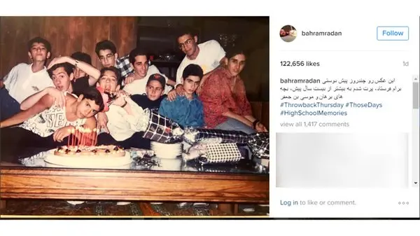 رکنا: بهرام رادان، عکسی از خود در یک جشن تولد را در اینستاگرام منتشر کرد که نشان می دهد عکس مربوط به بیست سال پیش است.