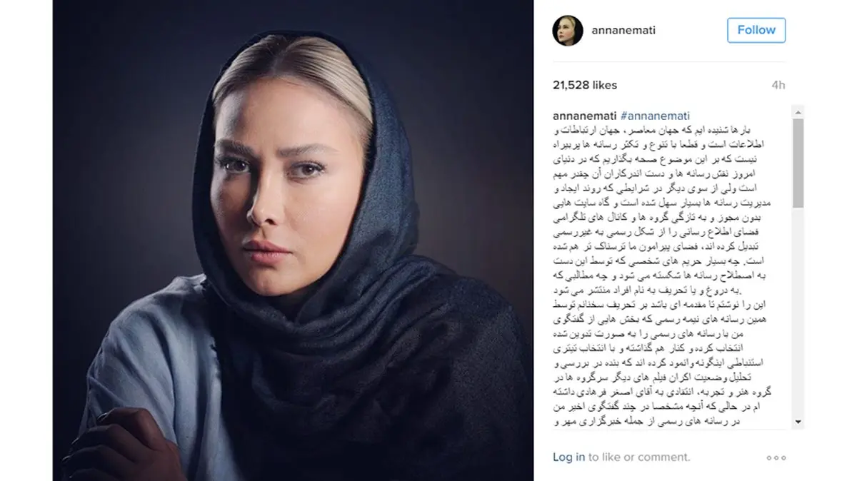 رکنا: آنا نعمتی در اینستاگرام خود از رسانه ها انتقاد کرد.