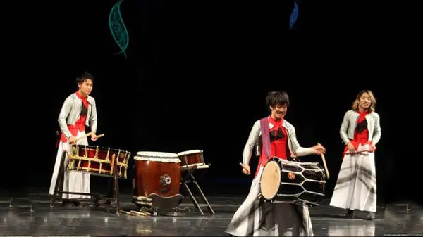 نوازندگان ژاپنی در بدو اجرا پاهای خود را با فاصله نگاه داشته و با حالتی آرام و طمانینه چوب های کوبیدن طبل را درست به سبک رفتار ژاپنی ها می چرخاندند و سپس شروع به اجرا می کردند. این گروه با ابزارهای سنتی ژاپنی که مشابهت به طبل و سنج ایرانی داشت؛ قطعه های خود را به روی صحنه بردند.
