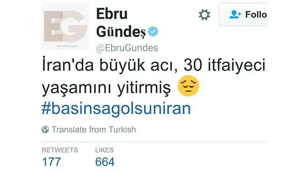 خواننده زن ترکیه ای از جان باختن آتش نشانان ایرانی ابراز تاسف کرد+ عکس