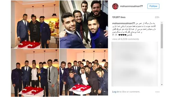 رکنا: دیروز تولد محسن مسلمان، هافبک پرسپولیس بود و او عکسی از این جشن در اینستاگرام انتشار داد.