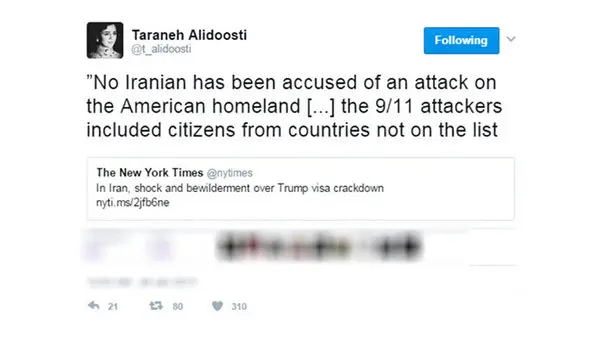 واکنش جالب ترانه علیدوستی به گزارش نیویورک تایمز