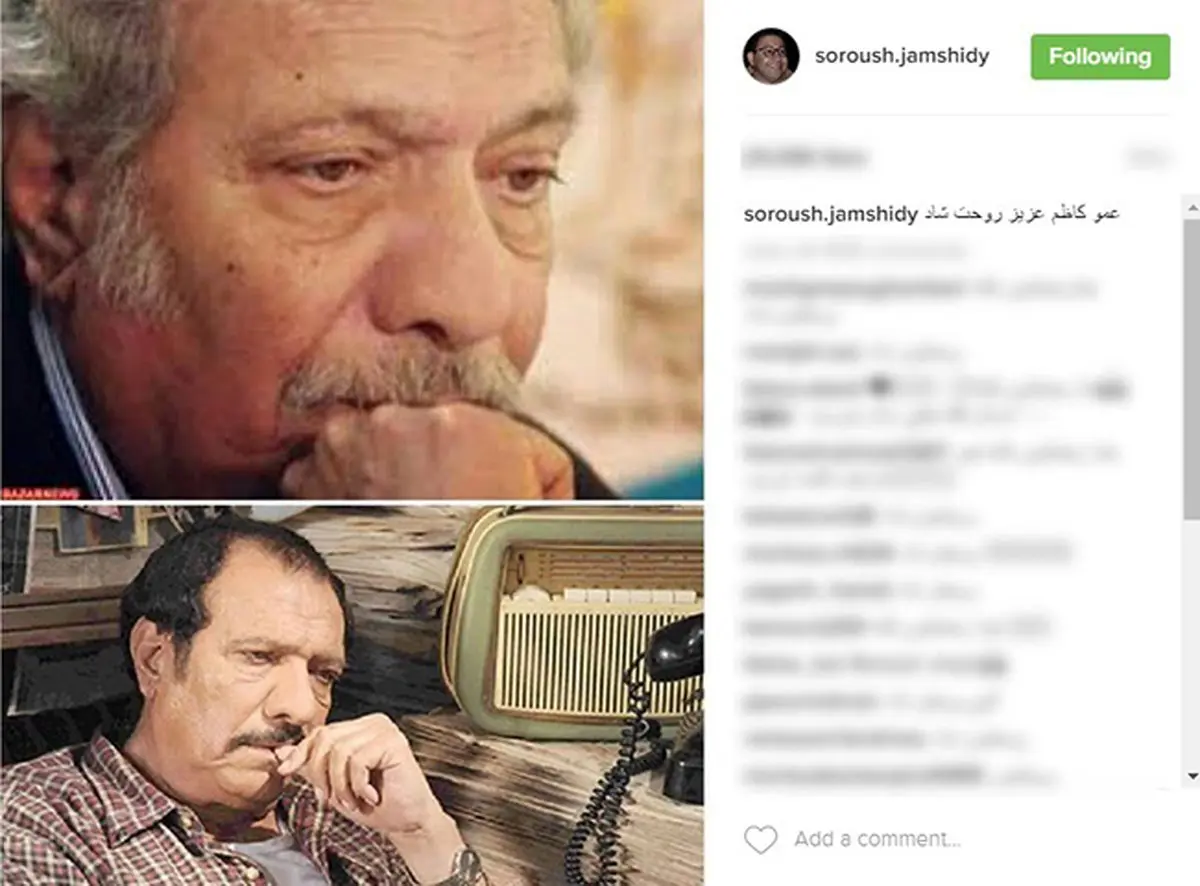"کاظم افرندنیا درگذشت. بازیگر Actor معمای شاه که به دلیل سکته مغزی در آیسییو بستری شده بود، درگذشت.روحش شاد."