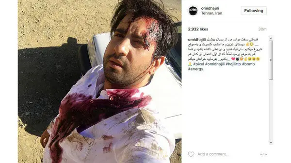 رکنا: امید حاجیلی عکسی از خود در اینستاگرام منتشر کرد که در آن صورت آن آغشته به خون است.