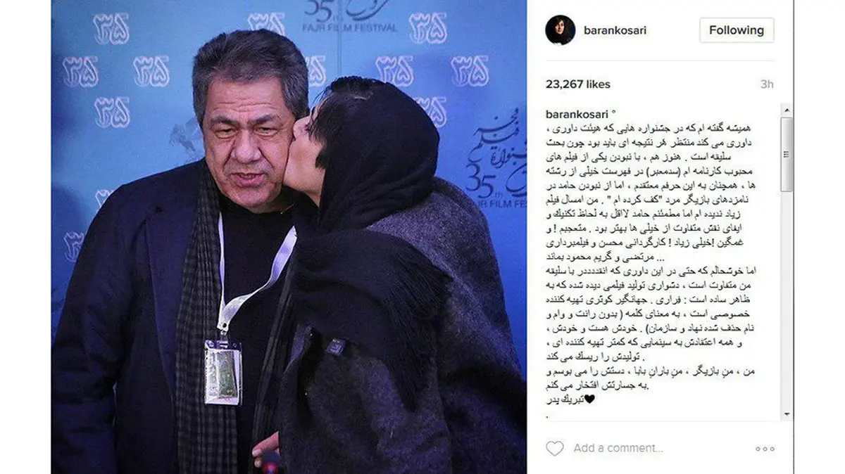 رکنا: باران کوثری با انتشار عکسی به همراه پدرش در اینستاگرام نسبت به انتخاب نشدن حامد بهداد واکنش نشان داد..