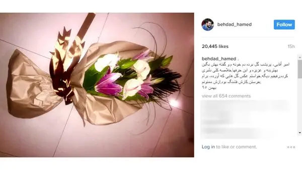 وی درباره این گل ها نوشت:امیر آقایى، پریشب گل برده دم خونه م و گفته بهش بگین بهترینه و عزیزه و این حرفها. خلاصه کلى دلبرى کرده. رفیقیم دیگه. خواستم عکس گل هایى که آورده، برام بفرستن. کارش قشنگ بود. ازش ممنونم.برای ورود به کانال تلگرام ما کلیک کنید.