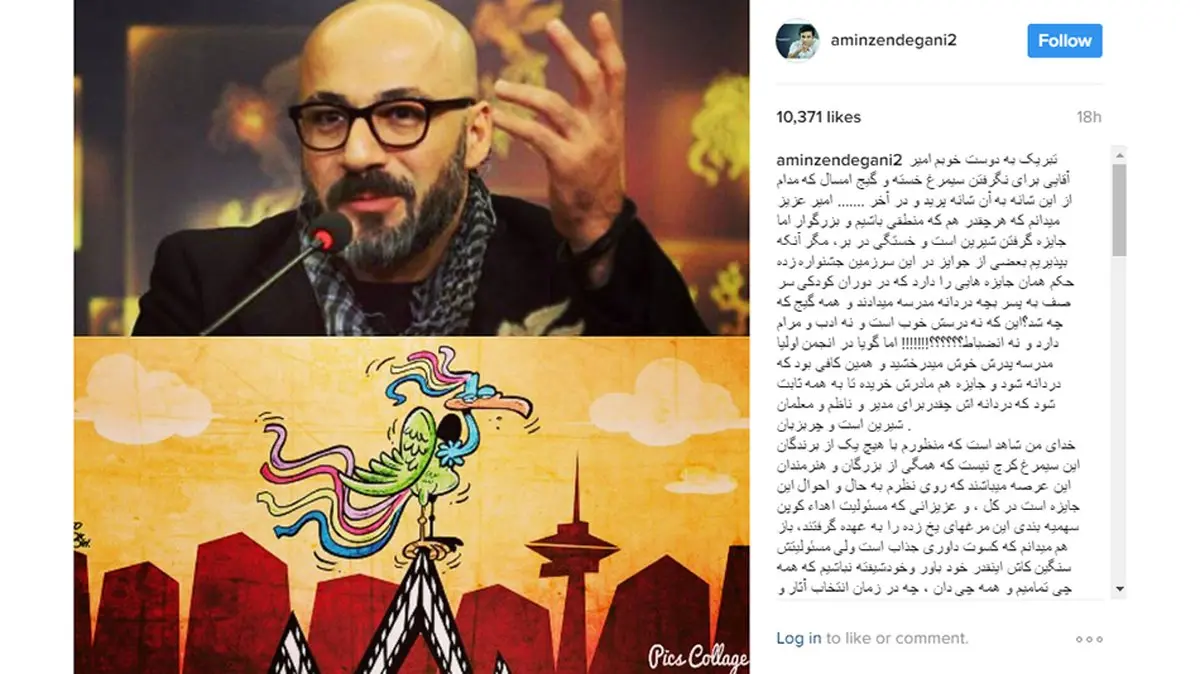 رکنا: امین زندگانی بعد از مراسم اختتامیه متنی برای امیر آقایی نوشت که انتقادی هم به جشنواره فجر بود.
