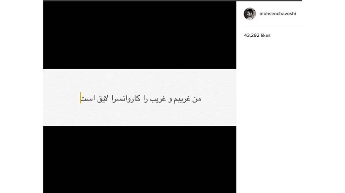 پس از آن که شهرام آذر - خواننده لس آنجلسی در یک برنامه ماهواره‌ای ادعا کرد صدای محسن چاوشی در ترانه‌هایش با دستگاه دستکاری می‌شود این خواننده پستی در اینستاگرام منتشر کرد. وی در این پست نوشت: «من غریبم و غریب را کاروانسرا لایق است.» او همچنین در کامنتی از هواداران خود درخواست کرد که به فردی که این ادعا را مطرح کرده بود، توهین نکنند. برای ورود به کانال تلگرام ما کلیک کنید.