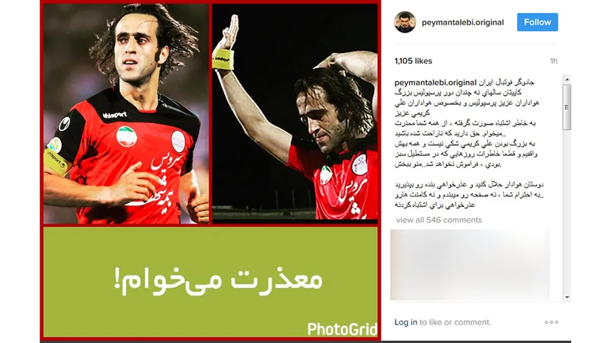 مجری برنامه «مردم چی میگن؟» در این باره در اینستاگرام نوشت: «جادوگر فوتبال ایران، کاپیتان سالهای نه چندان دور پرسپولیس بزرگ، هواداران عزیز پرسپولیس و به خصوص هواداران علی کریمی عزیز. به خاطر اشتباه صورت گرفته، از همه شما معذرت میخوام. حق دارید که ناراحت شده باشید.